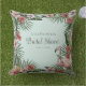 Este elegante travesseiro decorativo azul-turquesa apresenta ilustrações temáticas tropicais desenhadas à mão em tinta preta, mostrando flamingos cor-de-rosa, flores de hibisco e jasmim, abacaxi e folhas tropicais. Personalizar com Nome, Evento e Data. Azul-turquesa sólido.