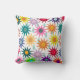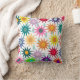 Este travesseiro decorativo tem um design de flores e gotas de chuva em um fundo branco.