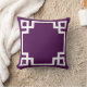 Travesseiro de padrão grego em roxo imperial e branco. Uma impressão gráfica, moderna, gráfica.