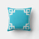 Travesseiro de padrão da chave grega em azul-aqua e branco. Uma impressão gráfica, moderna, gráfica.