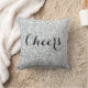 Este travesseiro decorativo bobo tem um acabamento cintilante e Cheers escritos em um roteiro de fita rico. Não são usadas sequências ou brilhos no fazer deste travesseiro, então você tem todo o brilho e o travesseiro ainda é macio ao toque.