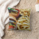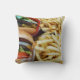 Uma foto de cheeseburgers e batatas fritas aquecidas da grelha faz um travesseiro decorativo divertido para crianças, adolescentes ou salas de jogos.