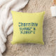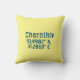 O travesseiro apresenta as coordenadas de latitude e longitude de Chernihiv, Ucrânia, com uma fonte azul-escura angustiada, em fundo amarelo. Chernihiv está localizado no Norte da Ucrânia e foi apelidado de "A cidade das lendas".