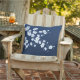 A cereja branca bonito floresce num fundo azul marinho. Para todos que amam flores e designs florais asiáticos.