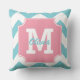 O monograma personalizou o travesseiro decorativo azul e cor-de-rosa 20" do poliéster de Chevron x 20"