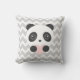Uma cinza e um padrão de fevron branco numa almofada com um panda giro segurando um coração. Visite minha loja para mais almofadas panda.
