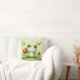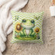 Crie seu próprio travesseiro adicionando texto personalizado. Personalize a cor de fundo verde-claro atrás do padrão de gesso branco. Sapo verde giro com borboletas, girassóis e sorriso.