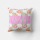 Travesseiro decorativo de microfone e monograma feminino com primavera / queda de abóboras cor-de-rosa floral e de pêssego e um fundo branco. Seu nome personalizado e monograma são escritos em um elegante roteiro branco e cinza com letras de mão com um fundo rosa. Você pode alterar a cor do texto, o estilo e o tamanho da fonte usando a opção personalizar.