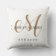 Lindo travesseiro de casamento ao ar livre com monograma dourado, com seus nomes e ano de casamento em elegante letra manuscrita preta e tipografia clássica com um monograma M dourado em fundo branco. Basta adicionar seus nomes, monograma e ano de casamento abaixo. Design elegante e decoração perfeita para mesa de casamento. Entre em contato comigo para outros monogramas através do chat da loja! Estamos felizes em ajudá-lo a tornar seu casamento o dia mais lindo! Exclusivamente projetado para você pelo Happy Dolphin Studio.
