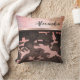 Neste travesseiro de na moda é uma textura de vidro cor-de-rosa brilhante junto com uma fita rosa e preta onde, acima dela, você pode personalizá-la para torná-la única e exclusivamente sua própria textura, que é um padrão de camuflagem rosa e marrom para contraste. Tendy Chic Vibes.