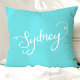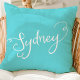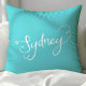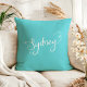 Almofada Chic Turquesa & Branco Tipografia de Sydney