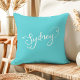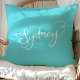 Ilumine seu espaço com esta almofada de lançamento turquesa chic com "Sydney" em tipografia branca elegante. Perfeita para adicionar um toque de estilo moderno e decoração inspirada em viagens à sua sala de estar, quarto ou canto aconchegante. Esta almofada estilosa celebra a icônica cidade australiana enquanto adiciona um toque de cor e charme à sua casa.