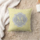 Um travesseiro decorativo quadrado de padrão reprodutor arquitetado de padrão redimensionado deco-amarelo com um crachá quatrefoil de cinza mole que você pode personalizar adicionando facilmente seu próprio monograma e nome. Esta é parte da Coleção de Primavera de Monograma de Mist Monograma de Meadowlark Scallops.