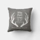 Seu pequeno vai adorar esta almofada divertida! Este design apresenta um fundo de textura cinza, chifres e tipografia personalizada. Adicione as estatísticas de nascimento do seu filho para completar a aparência.