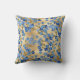 Lindo travesseiro de padrão chiyogami com miosótis azuis em um fundo dourado para adicionar um charmoso acento ao interior da sua casa.