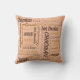 Um doce design travesseiro decorativo com um bloco de texto com chocolate, chocolate escuro e amêndoas em inglês, francês e alemão, além de outras palavras em diversos estilos de fonte, tamanhos e cores sobre um fundo pastel de pêssego de um lado e um fundo bege do outro lado do travesseiro. Na coluna à direita em Escolha suas opções, você também pode selecionar o Travesseiro lombar.