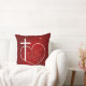 Imagens de cruz cristã branca, coração e uma estrela no céu. A citação da Bíblia: Quando viram a estrela, regozijaram-se com a maior alegria do excelente. Mateus 2:10. Fundo vermelho no lado frontal, fundo azul no lado traseiro. Duas cores, travesseiro decorativo impresso de dois lados. Tema de Natal Cristian. Feliz Natal e Feliz ano novo. Felicidade para você e sua!