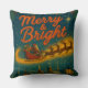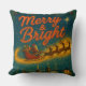 Imagine Santa soaring across the night sky, with a "Merry and Bright" message. Below, a quaint snow-covered village twinkles, radiating warmth and magic. Perfectly captured on your throw pillow, it's a festive scene inviting joy and nostalgia.