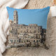 O travesseiro decorativo da foto com a arquitetura antiga dos di Matera de Sassi com casas cortou na montanha como cavernas em um dia claro com um céu azul na região de Basilicata em Italia do sul.