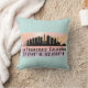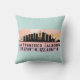 Travesseiro decorativo apresenta a silhueta de linha do horizonte da cidade de São Francisco na Califórnia com abertura de cor d'água e coordenadas de mapa de latitude e longitude