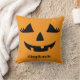 Almofada de decoração para casa no Halloween com rosto de jack o lantern com cílios. Personalize com nome ou frase.