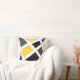 Travesseiro impresso com pintura geométrica acrílica original em amarelo, cinza, preto e branco.