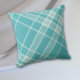 Este travesseiro decorativo apresenta um padrão de xadrez azul-turquesa, lacre e sutil cinza. Perfeito para um pátio de verão! Ambos os lados do travesseiro têm o mesmo padrão.