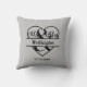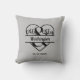 Um presente de travesseiro decorativo preto e cinza para os recém-casados. Personalize-o com o nome e a data do casamento. Você pode clicar em "editar mais" para alterar a cor de fundo.