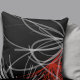 Almofada Cinza Branca Preta e Design Abstrato Vermelho
