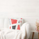 Travesseiro impresso com design geométrico moderno, branco e vermelho, a partir da pintura a aquarela original.