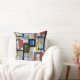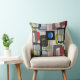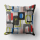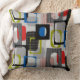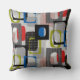 travesseiro decorativo de 20" x 20" com uma imagem no estilo 50, em ambos os lados, de quadros azuis, verdes, pretos e riscas de cinza, retângulos listrados vermelhos, retângulos de xadrez preta, retângulos vermelhos e brancos sólidos e quadrados de cinza nas cinzas. Consulte travesseiro decorativo redondo, travesseiro de sotaque e travesseiro de cubo correspondentes. Veja toda a coleção de Travesseiros Nifty no DECOR | Seção Travesseiros.