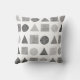 Este travesseiro decorativo x 16" apresenta um círculo desenhado à mão, triângulos e quadrados em tons de cinza sobre um fundo natural.