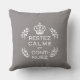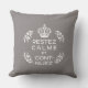Almofada cinza emblema branco Francês Fique calmo e continu