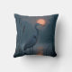 Uma erva-cinza fica graciosamente em água rasa cercada por altas sementes enquanto a lua rosa lança um brilho quente através da cena