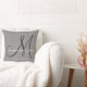 Cinza personalizada e travesseiro monograma branco com nomes de noiva e noiva e data de casamento em uma fonte de script sobre design num fundo de efeito fotográfico de linha de cinza IMPRESSA. Elke Clarke© para MonogramaGallery no Zazzle. Faz um presente excelente para recém-casados. Trendy de excelente, acessório elegante para o seu quarto, cadeira favorita, como decoração divertida em sua sala de estar ou adição decorativa formal à sua sala de estar. Personalize com seus nomes, monograma inicial e data de casamento.