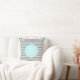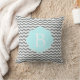 cinzas modernas, legal, elegantes e clássicas, listras brancas chevron zigzag, com forma decorativa aqua azul no meio, monograma, inicial, nome, presentes de texto para ela.