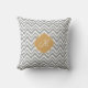 Almofada Cinza monograma e padrão quevron branco com Dourad