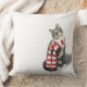 Cinza por gato num Travesseiro decorativo de cachecol branco e vermelho