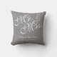 Cinza personalizada e White Sr. e Sra. Wedding Travesseiro com três letras monograma atrás. Design por Elke Clarke©. Disponível em www.zazzle.com/monogramgallery. Fundo clássico, personalizado, cinza ou linhagem de cinza (efeito fotográfico impresso), personalizável com nomes de noiva e noivo em letra branco e data de casamento. Bela design é perfeita para presentes de casamento, travesseiros queridos, presentes de aniversário de casamento e muito mais. Use o menu editar para alterar as cores ou visite nossa loja para obter mais designs e opções de cor.