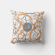 Este travesseiro decorativo de padrão geométrico funky apresenta formas ovais laranja e cinza escura entrelaçadas em um fundo branco - personalize com seu monograma em um pendante de círculo de cinza - por katz_d_zynes