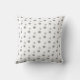 Belo travesseiro decorativo, bolinhas modernas de cinzas prateadas sobre fundo branco.
