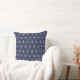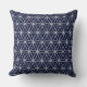 Almofada com belos círculos de flores prateadas em fundo azul. Este design é conhecido como a flor da vida e é reverenciado por grandes religiões e muitas culturas. significa que todos estamos interligados.