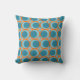 Este travesseiro decorativo tem um design moderno século médio de círculos laranja abertos com círculos de metais sólidos correndo pelo padrão com linhas verticais lacrimogêneas e linhas horizontais laranja num campo de chalé.