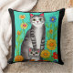 Um travesseiro bonito para amantes de gatos. Gato colorido, gatinho e flores, estilo de arte popular, gerada por IA com trabalho de arte.