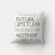 Um travesseiro quadrado branco com a citação "Eu sei que meu futuro é LIMITADO porque não consigo ver NADA na minha frente".