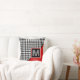 Almofada Clássico Houndstooth e Monograma | Preto Vermelho