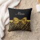 Sua adolescente se sentirá imersa no luxo feminino com esse travesseiro decorativo quadrado de impressão zebra preto e ouro desenhado com uma fita cintilante de sequência amarrada em um arco luxo. Personalize este design de moda de impressão de animais brilhantes e reluzentes adicionando seu nome. Imagem impressa plana, NÃO com brilho ou fita real.