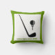 Clube de golfe e exibição de travesseiro decorativo preto, verde que apresenta um ícone minimalista de um clube e bola de golfe preto e seu texto sobre fundo branco com borda verde. Esta design moderna e minimalista faz um presente perfeito para jogadores de golfe - golfistas - ou apenas amantes de golfe em sua vida. Veja muitas designs na nossa loja de presentes esportivos.