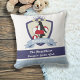 O design do produto apresenta uma crista com um pinguim em pé com um tubo interior vermelho e branco e uma bola de praia. Esta ilustração adorável de animais selvagens com texto personalizado faz um travesseiro decorativo bonito e único para crianças.
