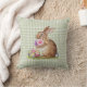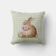 Coelhinho de aquarelas bonecas com flores e ovos coloridos de Páscoa com padrão de gingham verde e branco